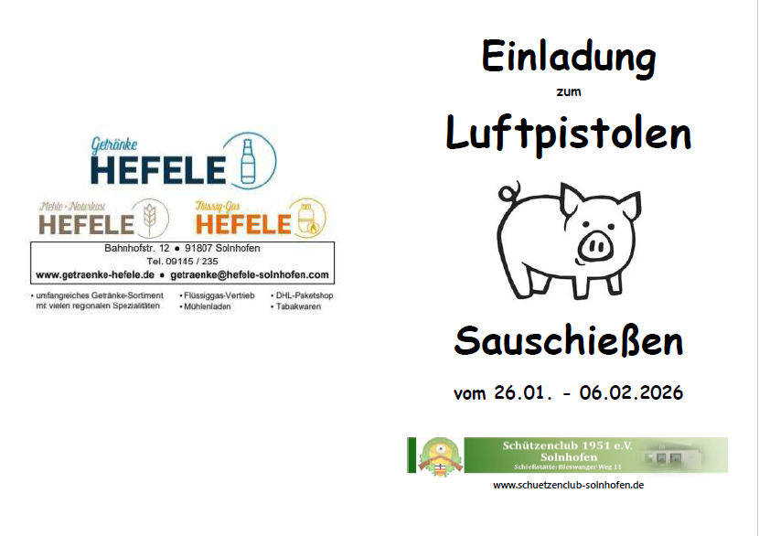 steht auch wieder unser alljhährliches Luftpistolen-Sauschießen in den Startlöchern.