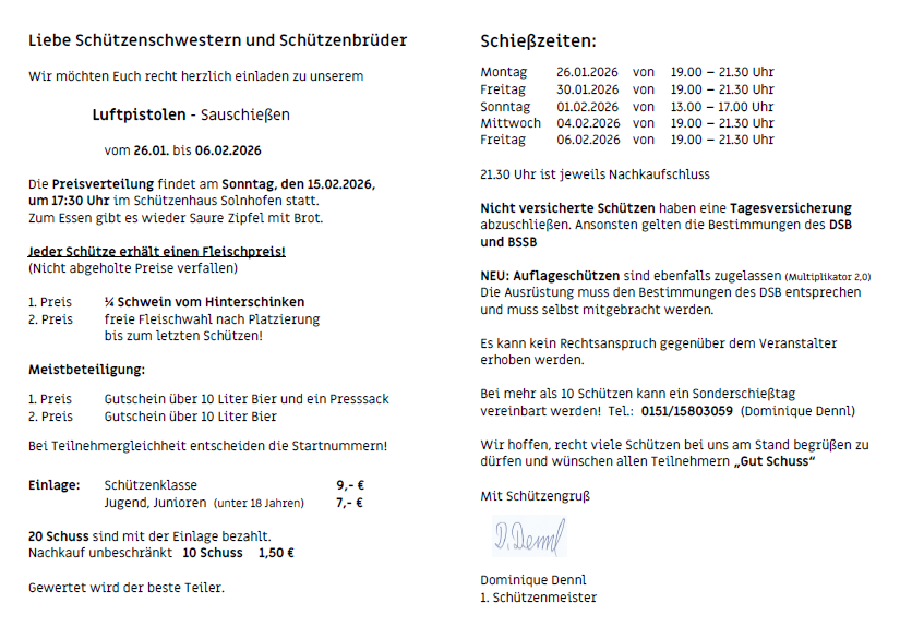 steht auch wieder unser alljhährliches Luftpistolen-Sauschießen in den Startlöchern.